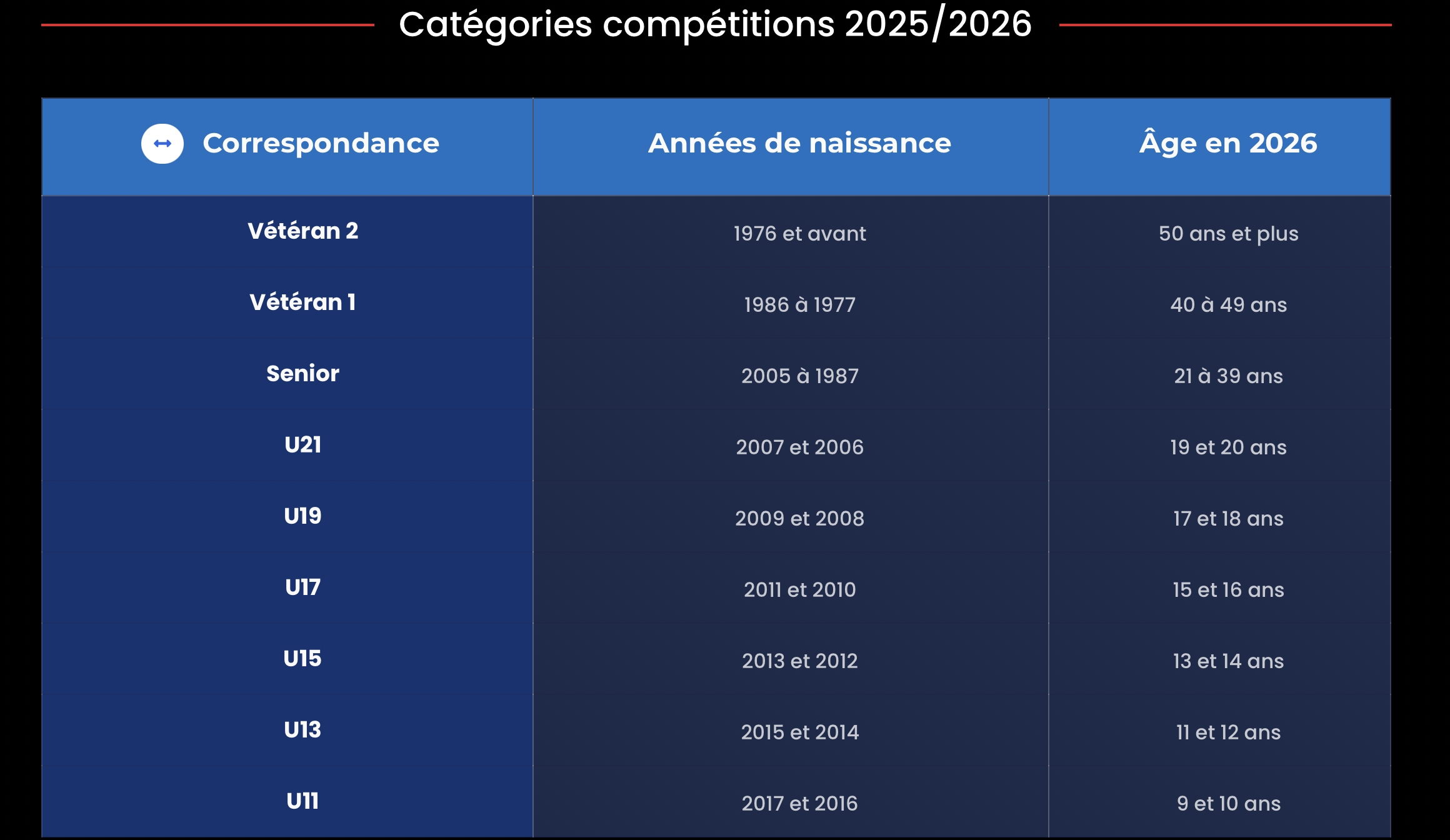 Pour la saison sportive 2025/2026, les catégories escalade sont les suivantes :